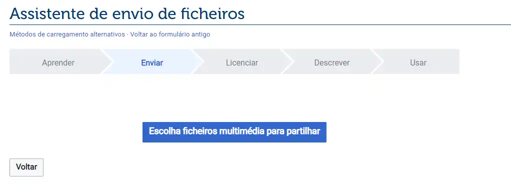 3. Escolha o ficheiro que pretende carregar clicando em "Escolha multimédia para partilhar".