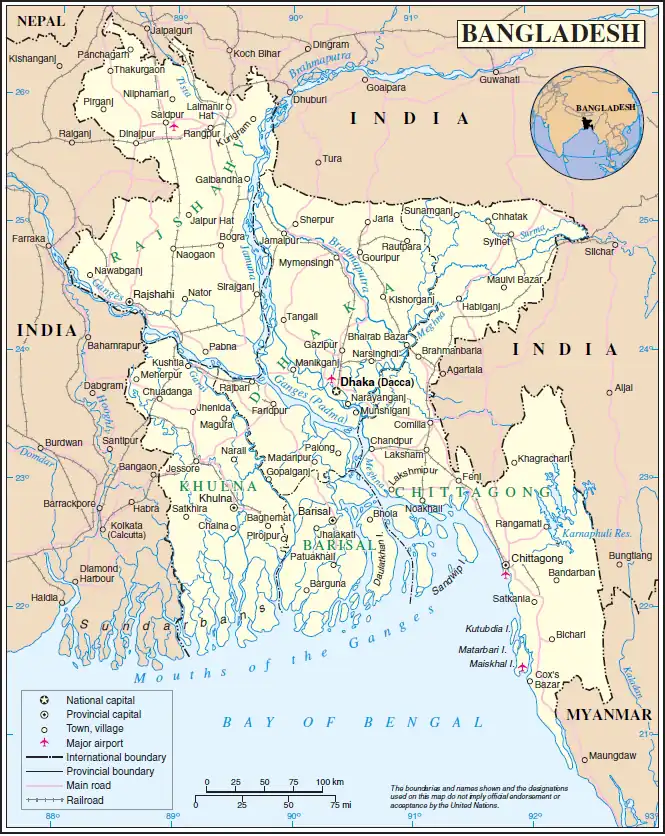 Bangladesh is a country that is located in the heart of the Ganges-Brahmaputra-Delta in the south of the Asian continent[1]. Bangladesh borders India on 3 frontiers: west, north and east, Myanmar on the south-east, and the Bay of Bengal on the south[2].