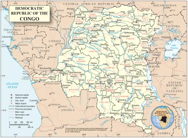 - ↑ 7.0 7.1 7.2 Central Intelligence Agency (CIA). (2019). The World Fact-book: Africa: Congo, Democratic Republic of the. Retrieved from: https://www.cia.gov/library/Publications/the-world-factbook/geos/cg.html