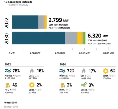 The newly reformed EDM is now the responsible entity for generation, transmission and distribution of electricity as well as the regulator of electricity from renewable energy sources, as stated in the Electricity Law (Law No.21/91)[3].