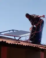 Figura 12: Técnico do NEER durante a montagem de um sistema fotovoltaico.