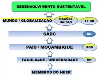 Os trabalhos e os esforços que o NEER tem feito, tem como objectivo, fazer a diferença na Universidade pedagógica, no país em geral, regionalmente e por fim abrangir todo o mundo como mostra o esquema abaixo,