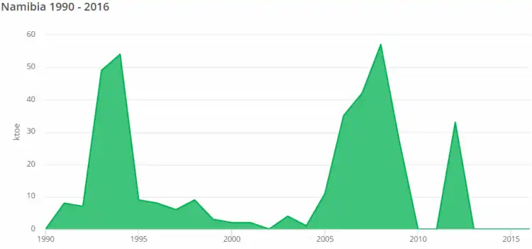<ref>tag; name "Munyayi, R. Chiguvare, Z. & Ileka, H. (2015). Fact Sheet on: Renewable Energy – Shifting Energy Systems in Namibia towards a More Sustainable Path. Retrieved from: https://www.thinknamibia.org.na/files/learn-and-engage/jtBTlZQO-YnHdSkT.pdf" defined multiple times with different content Cite error: Invalid<ref>tag; name "Munyayi, R. Chiguvare, Z. & Ileka, H. (2015). Fact Sheet on: Renewable Energy – Shifting Energy Systems in Namibia towards a More Sustainable Path. Retrieved from: https://www.thinknamibia.org.na/files/learn-and-engage/jtBTlZQO-YnHdSkT.pdf" defined multiple times with different content Cite error: Invalid<ref>tag; name "Munyayi, R. Chiguvare, Z. & Ileka, H. (2015). Fact Sheet on: Renewable Energy – Shifting Energy Systems in Namibia towards a More Sustainable Path. Retrieved from: https://www.thinknamibia.org.na/files/learn-and-engage/jtBTlZQO-YnHdSkT.pdf" defined multiple times with different content Cite error: Invalid<ref>tag; name "Munyayi, R. Chiguvare, Z. & Ileka, H. (2015). Fact Sheet on: Renewable Energy – Shifting Energy Systems in Namibia towards a More Sustainable Path. Retrieved from: https://www.thinknamibia.org.na/files/learn-and-engage/jtBTlZQO-YnHdSkT.pdf" defined multiple times with different content Cite error: Invalid<ref>tag; name "Munyayi, R. Chiguvare, Z. & Ileka, H. (2015). Fact Sheet on: Renewable Energy – Shifting Energy Systems in Namibia towards a More Sustainable Path. Retrieved from: https://www.thinknamibia.org.na/files/learn-and-engage/jtBTlZQO-YnHdSkT.pdf" defined multiple times with different content Cite error: Invalid<ref>tag; name "Munyayi, R. Chiguvare, Z. & Ileka, H. (2015). Fact Sheet on: Renewable Energy – Shifting Energy Systems in Namibia towards a More Sustainable Path. Retrieved from: https://www.thinknamibia.org.na/files/learn-and-engage/jtBTlZQO-YnHdSkT.pdf" defined multiple times with different content Cite error: Invalid<ref>tag; name "Munyayi, R. Chiguvare, Z. & Ileka, H. (2015). Fact Sheet on: Renewable Energy – Shifting Energy Systems in Namibia towards a More Sustainable Path. Retrieved from: https://www.thinknamibia.org.na/files/learn-and-engage/jtBTlZQO-YnHdSkT.pdf" defined multiple times with different content - ↑ 2.0 2.1 2.2 2.3 2.4 Von Oertzen, D. (2010). Namibian National Issues Report on the Key Sector of Energy with a Focus on Mitigation. Retrieved from: https://www.undpcc.org/docs/National%20issues%20papers/Energy%20(mitigation)/15_Namibia%20NIP_energy%20mitigation.pdf