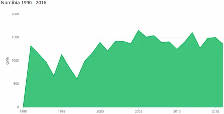 Hydropower is the country's major source for electricity generation, particularly, the Ruacana hydroelectric power station (330 MW)[3].