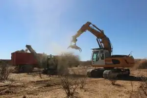 Bush encroachment in Namibia is defined as the densification and rapid spread of native bush and shrub species, resulting in an imbalance of biodiversity.. It is considered a serious ecological and economic problem in Namibia and affects approximately 260,000 to 300,000 km2 of land in 9 of the country's 14 regions. Additionally, invasion of exotic tree or shrub species such as Prosopis also pose a threat.