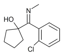 1-(2-Chloro-N-methylbenzimidoyl)cyclopentanol, sometimes misleadingly referred to as hydroxylimine hydrochloride, is a chemical compound which is the final intermediate in the synthesis of ketamine, an anaesthetic drug which is also subject to recreational abuse. This chemical intermediate is not active as a drug in its own right, and is legal in most countries, but is readily converted into ketamine by dissolving it in a suitable high-boiling point solvent and heating, with no other chemicals required.[1][2] This has made it subject to illicit trade as a drug precursor, and it has sometimes been seized by law enforcement agencies in significant quantities, leading to it being specifically banned as a controlled drug precursor in some jurisdictions such as Taiwan.[3][4]