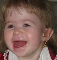 A toddler showing facial symptoms of the syndrome. | |