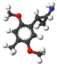 2,5-Dimethoxy-4-methylphenylcyclopropylamine (DMCPA) is a lesser-known psychedelic drug and a substituted amphetamine. DMCPA was first synthesized by Alexander Shulgin. In his book PiHKAL, the dosage range is listed as 15–20 mg and the duration is listed as 4–8 hours.[1] DMCPA produces open-eye visuals, anorexia, and psychedelic dreams. Shulgin gives it a +++ on the Shulgin Rating Scale.