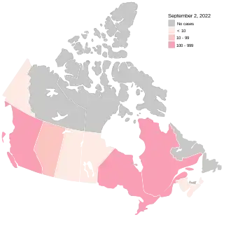 ![]() Spread of disease as of September 2, 2022 | |
