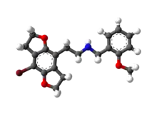 - ↑ Ettrup A, Hansen M, Santini MA, Paine J, Gillings N, Palner M, et al. (April 2011). "Radiosynthesis and in vivo evaluation of a series of substituted 11C-phenethylamines as 5-HT (2A) agonist PET tracers". European Journal of Nuclear Medicine and Molecular Imaging. 38 (4): 681–93. doi:10.1007/s00259-010-1686-8. PMID 21174090. S2CID 12467684.
