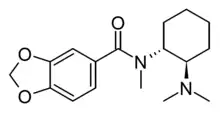 3,4-MDO-U-47700 is an opioid analgesic which has been sold as a designer drug, first appearing in 2017 after U-47700 itself was banned in various jurisdictions. It is less potent than U-47700 but is still a full agonist at the μ-opioid receptor, with slightly higher potency than morphine.[1][2][3] It is illegal in Virginia.[4]