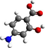 4-Aminosalicylic acid, also known as para-aminosalicylic acid (PAS) and sold under the brand name Paser among others, is an antibiotic primarily used to treat tuberculosis.[1] Specifically it is used to treat active drug resistant tuberculosis together with other antituberculosis medications.[4] It has also been used as a second line agent to sulfasalazine in people with inflammatory bowel disease such as ulcerative colitis and Crohn's disease.[4] It is typically taken by mouth.[4]