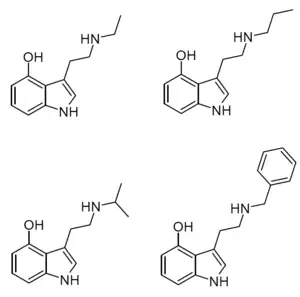 - ↑ Sherwood AM, Burkhartzmeyer EK, Williamson SE, Baumann MH, Glatfelter GC (January 2024). "Psychedelic-like Activity of Norpsilocin Analogues". ACS Chemical Neuroscience. 15 (2): 315–327. doi:10.1021/acschemneuro.3c00610. PMC 10797613. PMID 38189238.