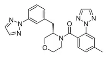 ACT-539313 ((4-methyl-2-[1,2,3]triazol-2-yl-phenyl)-[(R)- 3-(3-[1,2,3]triazol-2-yl-benzyl)-morpholin-4-yl]-methanone) is an orally active, reversible, selective OX1 receptor antagonist (1-SORA) that readily crosses the blood–brain barrier.