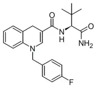 ADB-FUBHQUCA is a synthetic cannabinoid receptor agonist that has been sold as a designer drug, first reported in 2022.[1] It is related to the previously reported compound ADB-FUBICA but with the central indole ring system expanded to a 1,4-dihydroquinoline structure. This breaks the aromaticity of the ring system, and ADB-FUBHQUCA is relatively low in potency compared to related compounds where the aromatic core is retained.[2][3][4][5][6][7][8][9][10][11][12][13]