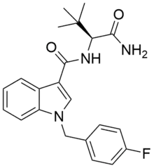 - ↑ Banister SD, Moir M, Stuart J, Kevin RC, Wood KE, Longworth M, et al. (September 2015). "Pharmacology of Indole and Indazole Synthetic Cannabinoid Designer Drugs AB-FUBINACA, ADB-FUBINACA, AB-PINACA, ADB-PINACA, 5F-AB-PINACA, 5F-ADB-PINACA, ADBICA, and 5F-ADBICA". ACS Chemical Neuroscience. 6 (9): 1546–59. doi:10.1021/acschemneuro.5b00112. PMID 26134475.