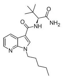 - ↑ Sparkes E, Cairns EA, Kevin RC, Lai F, Grafinger KE, Chen S, et al. (February 2022). "Structure-activity relationships of valine, tert-leucine, and phenylalanine amino acid-derived synthetic cannabinoid receptor agonists related to ADB-BUTINACA, APP-BUTINACA, and ADB-P7AICA". RSC Medicinal Chemistry. 13 (2): 156–174. doi:10.1039/d1md00242b. PMC 8864554. PMID 35308023.