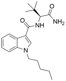 - ↑ Banister SD, Moir M, Stuart J, Kevin RC, Wood KE, Longworth M, et al. (September 2015). "Pharmacology of Indole and Indazole Synthetic Cannabinoid Designer Drugs AB-FUBINACA, ADB-FUBINACA, AB-PINACA, ADB-PINACA, 5F-AB-PINACA, 5F-ADB-PINACA, ADBICA, and 5F-ADBICA". ACS Chemical Neuroscience. 6 (9): 1546–59. doi:10.1021/acschemneuro.5b00112. PMID 26134475.