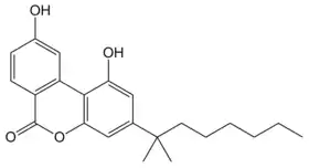 - ↑ Khanolkar AD, Lu D, Ibrahim M, Duclos RI, Thakur GA, Malan TP, et al. (December 2007). "Cannabilactones: a novel class of CB2 selective agonists with peripheral analgesic activity". Journal of Medicinal Chemistry. 50 (26): 6493–500. doi:10.1021/jm070441u. PMID 18038967.
