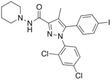 - ↑ Lan R, Liu Q, Fan P, Lin S, Fernando SR, McCallion D, et al. (February 1999). "Structure-activity relationships of pyrazole derivatives as cannabinoid receptor antagonists". Journal of Medicinal Chemistry. 42 (4): 769–776. doi:10.1021/jm980363y. PMID 10052983.