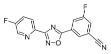 AZD 9272 is a drug which acts as a selective antagonist for the metabotropic glutamate receptor subtype mGluR5.[1] It was unsuccessful in human trials as an analgesic,[2] but continues to be widely used in research especially as its radiolabelled forms.[3][4][5][6]
