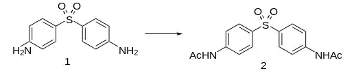 Acedapsone is conveniently prepared by acetylation of dapsone.