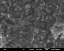 A. thiooxidans has so far not grown on agar or other solid media, instead it prefers liquid media with a strong, evenly dispersed clouding throughout, and it produces no sediment formation or surface growth.[2] Although it does not grow on traditional organic media, it will not be harmed by a medium containing peptone or glucose.[2] Media best suited for its growth are those that are inorganic and allow A. thiooxidans to use sulfur as a source of energy.[2] The following characteristic reactions accompany the growth of A. thiooxidans in the presence of tricalcium phosphate: the layer on the surface of the medium formed by sulfur tends to drop to the bottom, tricalcium phosphate is dissolved by the product of sulfur oxidation, sulfuric acid, giving soluble phosphate and CaSO4 + 2 H2O, and radiating monoclinic crystals that hang from the sulfur particles floating on the medium surface or protruding upward from the bottom are formed by the precipitation of calcium sulfate.[2] The medium becomes acidic with a pH around 2.8 and remains stationary until all the calcium phosphate has been dissolved.[2] Anything with the tendency to change the medium to an alkaline state would be considered harmful to the uniform growth of A. thiooxidans, but if it is left unharmed by an excess of acid or alkali, numerous consecutive generations may be kept alive on the liquid media.[2]