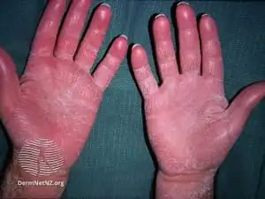 The development of ichthyosis in adulthood can be a manifestation of systemic disease, and it has been described in association with malignancies, drugs, endocrine and metabolic disease, HIV, infection, and autoimmune conditions.[3]: 494