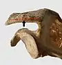 The acromion process of bats (Mammalia: Chiroptera) is particularly elongated compared to that of humans.