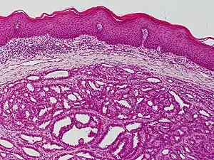 - 1 2 3 Sawaya JL, Khachemoune A (September 2014). "Poroma: a review of eccrine, apocrine, and malignant forms". International Journal of Dermatology. 53 (9): 1053–61. doi:10.1111/ijd.12448. PMID 24697501.