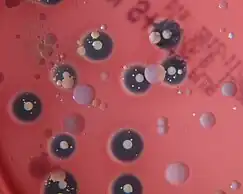 As part of the genus Actinobacillus, Actinobacillus equuli is gram negative.[1] A. equuli displays negative results after inoculation into motility agar indicating a lack of motility.[22] A. equuli is equipped with catalase and urease enzymes and therefore yield positive results for these tests. Although facultatively anaerobic, A. equuli can survive in environments exposed to oxygen as it contains the enzyme cytochrome oxidase for use in the electron transport chain.[3][24] Differentiation between A. equuli subsp. equuli and A. equuli subsp. haemolyticus can be made using sheep's blood agar or the CAMP test upon the absence or presence of beta-haemolysis, respectively.[3][25]