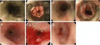 - ↑ Watermeyer G, Shaw J, Krige J (2007). "Gastroentestinal: Acute necrotizing esophagitis". Journal of Gastroenterology and Hepatology. 22 (7): 1162. doi:10.1111/j.1440-1746.2007.05013.x. PMID 17608863. S2CID 71186463.