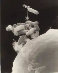 Although generally seen as an infection in plants, Agrobacterium can be responsible for opportunistic infections in humans with weakened immune systems,[14][15] but has not been shown to be a primary pathogen in otherwise healthy individuals. One of the earliest associations of human disease caused by Agrobacterium radiobacter was reported by Dr. J. R. Cain in Scotland (1988).[16] A later study suggested that Agrobacterium attaches to and genetically transforms several types of human cells by integrating its T-DNA into the human cell genome. The study was conducted using cultured human tissue and did not draw any conclusions regarding related biological activity in nature.[17]