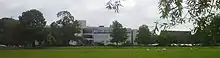 In 1963 a new Alderley House was built as the commercial headquarters (it was demolished in 2015). The original Tenants' Hall was used a hospital in the Great War and was once named the Sir James Black Conference Centre in honour of the Nobel Prize-winning discoverer of beta-blockers; as of 2022 it houses a pub called the Churchill Tree.[5] The gardens and the woodlands have been restored and the nearby Grade II listed Home Farm buildings preserved. The latter includes coach-houses, cottages and barns of hand-made English orange brick and a six-sided columbarium or dovecote.[6][7]