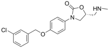 - ↑ Tipton KF, Fowler CJ, McCrodden JM, Strolin Benedetti M (January 1983). "The enzyme-activated irreversible inhibition of type-B monoamine oxidase by 3-(4-[(3-chlorophenyl)methoxy]phenyl)-5-[(methylamino) methyl]-2-oxazolidinone methanesulphonate (compound MD 780236) and the enzyme-catalysed oxidation of this compound as competing reactions". The Biochemical Journal. 209 (1): 235–42. doi:10.1042/bj2090235. PMC 1154077. PMID 6847610.