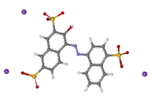 Amaranth is an anionic dye. It can be applied to natural and synthetic fibers, leather, paper, and phenol-formaldehyde resins. As a food additive it has E number E123. Amaranth usually comes as a trisodium salt. It has the appearance of reddish-brown, dark red to purple water-soluble powder that decomposes at 120 °C without melting. Its water solution has an absorption maximum of about 520 nm. Like all azo dyes, Amaranth was, during the middle of the 20th century, made from coal tar; modern synthetics are more likely to be made from petroleum byproducts.[1][2]