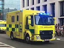 Emergency ambulances are highly likely to be involved in hazardous situations, including incidents such as a road traffic collision, as these emergencies create people who are likely to be in need of treatment. They are required to gain access to patients as quickly as possible, and in many countries, are given dispensation from obeying certain traffic laws. For instance, they may be able to treat a red traffic light or stop sign as a yield sign ('give way'),[57] or be permitted to break the speed limit.[58] Generally, the priority of the response to the call will be assigned by the dispatcher, but the priority of the return will be decided by the ambulance crew based on the severity of the patient's illness or injury. Patients in significant danger to life and limb (as determined by triage) require urgent treatment by advanced medical personnel,[59] and because of this need, emergency ambulances are often fitted with passive and active visual and/or audible warnings to alert road users.
