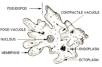 Amoeba is a genus of single-celled amoeboids in the family Amoebidae.[2] The type species of the genus is Amoeba proteus, a common freshwater organism, widely studied in classrooms and laboratories.[3]