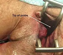 • Fistula clip closure (OTSC Proctology) is the latest surgical development, which involves the closure of the internal fistula opening with a superelastic clip made of nitinol (OTSC). During surgery, the fistula tract is debrided with a special fistula brush and the clip is transanally applied with the aid of a preloaded clip applicator. The surgical principle of this technique relies on the dynamic compression and permanent closure of the internal fistula opening by the superelastic clip. Consequently, the fistula tract dries out and heals instead of being kept open by continuous feeding with stool and fecal organisms. This minimally-invasive sphincter-preserving technique has been developed and clinically implemented by the German surgeon Ruediger Prosst.[19][20] First clinical data of the clip closure technique demonstrate a success rate of 90% for previously untreated fistulae[21] and a success rate of 70% for recurrent fistulae.[22]