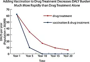 It has been estimated that as many as 22.1 million DALYs have been lost due to hookworm infection. Recently, there has been increasing interest to address the public health concerns associated with hookworm infection. For example, the Bill & Melinda Gates Foundation recently donated US$34 million to fight Neglected Tropical Diseases including hookworm infection.[60] Former US President Clinton also announced a mega-commitment at the Clinton Global Initiative (CGI) 2008 Annual Meeting to de-worm 10 million children.[61]
