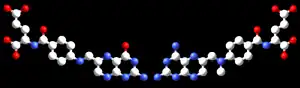 The drug methotrexate (right) is an antimetabolite that interferes with the metabolism of folic acid (left).