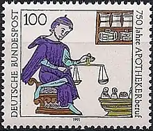 German postage stamp from 1991, commemorating 750 years of the apothecary profession