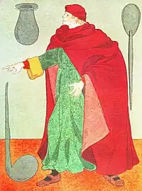 In addition to dispensing herbs and medicine, apothecaries offered general medical advice and a range of services that are now performed by other specialist practitioners, such as surgeons and obstetricians.[2] Apothecary shops sold ingredients and the medicines they prepared wholesale to other medical practitioners, as well as dispensing them to patients.[3] In 17th-century England, they also controlled the trade in tobacco which was imported as a medicine.[4]