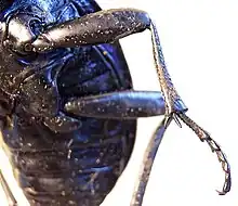 In arthropods, an appendage refers to any of the homologous body parts that may extend from a body segment, including antennae, mouthparts (including mandibles, maxillae and maxillipeds), gills, locomotor legs (pereiopods for walking, and pleopods for swimming), sexual organs (gonopods), and parts of the tail (uropods). Typically, each body segment carries one pair of appendages. An appendage which is modified to assist in feeding is known as a maxilliped or gnathopod.
