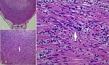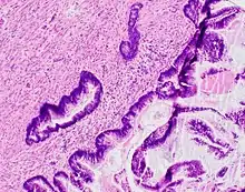 Mucinous cystadenoma is an obsolete term for appendiceal mucinous neoplasm.[15]