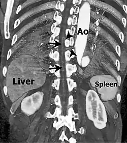 - ↑ Yoshioka, K.; Niinuma, H.; Ohira, A.; Nasu, K.; Kawakami, T.; Sasaki, M.; Kawazoe, K. (2003). "MR Angiography and CT Angiography of the Artery of Adamkiewicz: Noninvasive Preoperative Assessment of Thoracoabdominal Aortic Aneurysm". Radiographics. 23 (5): 1215–25. doi:10.1148/rg.235025031. PMID 12975511.
