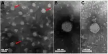 Virions are enveloped, spherical particles, 100 to 130 nm in diameter, and the virus genome comprises about 12 kb of negative-sense, unsegmented RNA.[2]