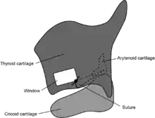 - A window is cut in the thyroid cartilage for a suture to be passed through later in the procedure.