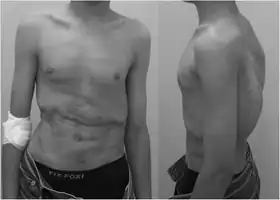 In severe cases, surgical action is needed; otherwise, failure to intervene can result in pulmonary damage and eventual fatality. Vertical expandable prosthetic titanium rib (VEPTR) surgery is the most common treatment for severe chest wall deformities. During this procedure, one or more titanium rods are attached to the ribs near the spine, which allow space for the patient’s lungs to develop. Small adjustments are made every four to six months through a small incision in the patient's back.[10] Alternatively, lateral thoracic expansion is used to enlarge the chest wall by separating the ribs from their periosteum and covering them with titanium struts. This procedure is common among patients older than a year due to its safe and effective outcome. Chest reconstruction is another surgical procedure that promotes thoracic cage growth. It can be done as an enlargement of the thoracic cage by sternotomy and fixation with bone grafts, or a methylmethacrylate prostheses plate.[8]