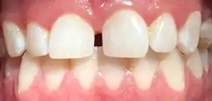 Dental attrition is a type of tooth wear caused by tooth-to-tooth contact, resulting in loss of tooth tissue, usually starting at the incisal or occlusal surfaces.[1]